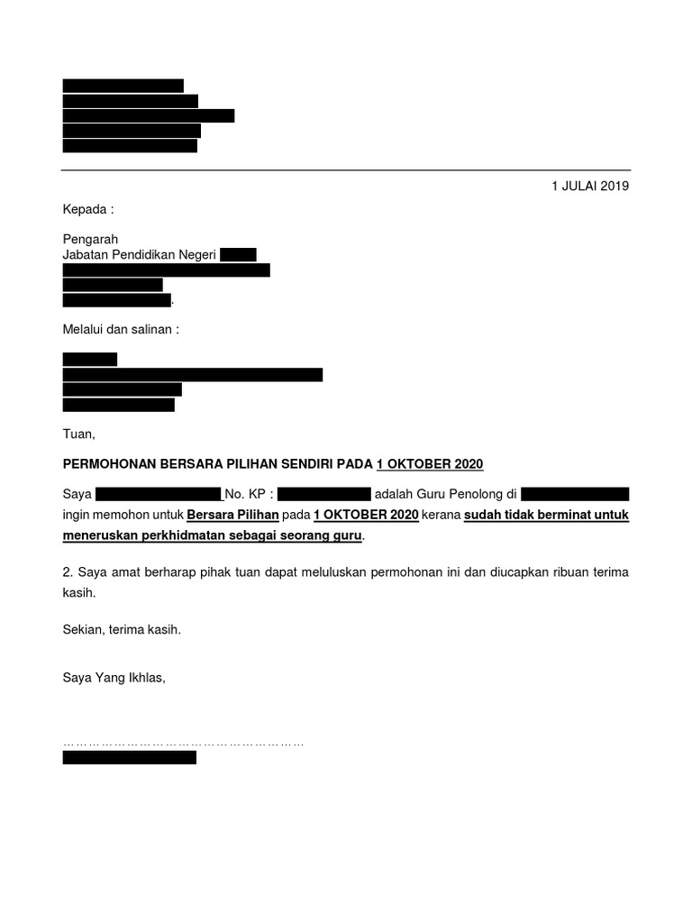 for "Contoh Surat Bersara Awal - Contoh Surat Mohon Bersara Pilihan Contoh Surat"
